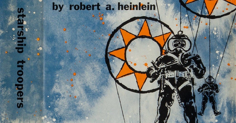 56. Starship Troopers by Robert A. Heinlein (1959) — Soldier Johnny Rico fights alien bugs in intense interstellar war, exploring duty, citizenship, and combat. As an aside, Heinlein has many sci-fi novels but many are not suitable for minors.